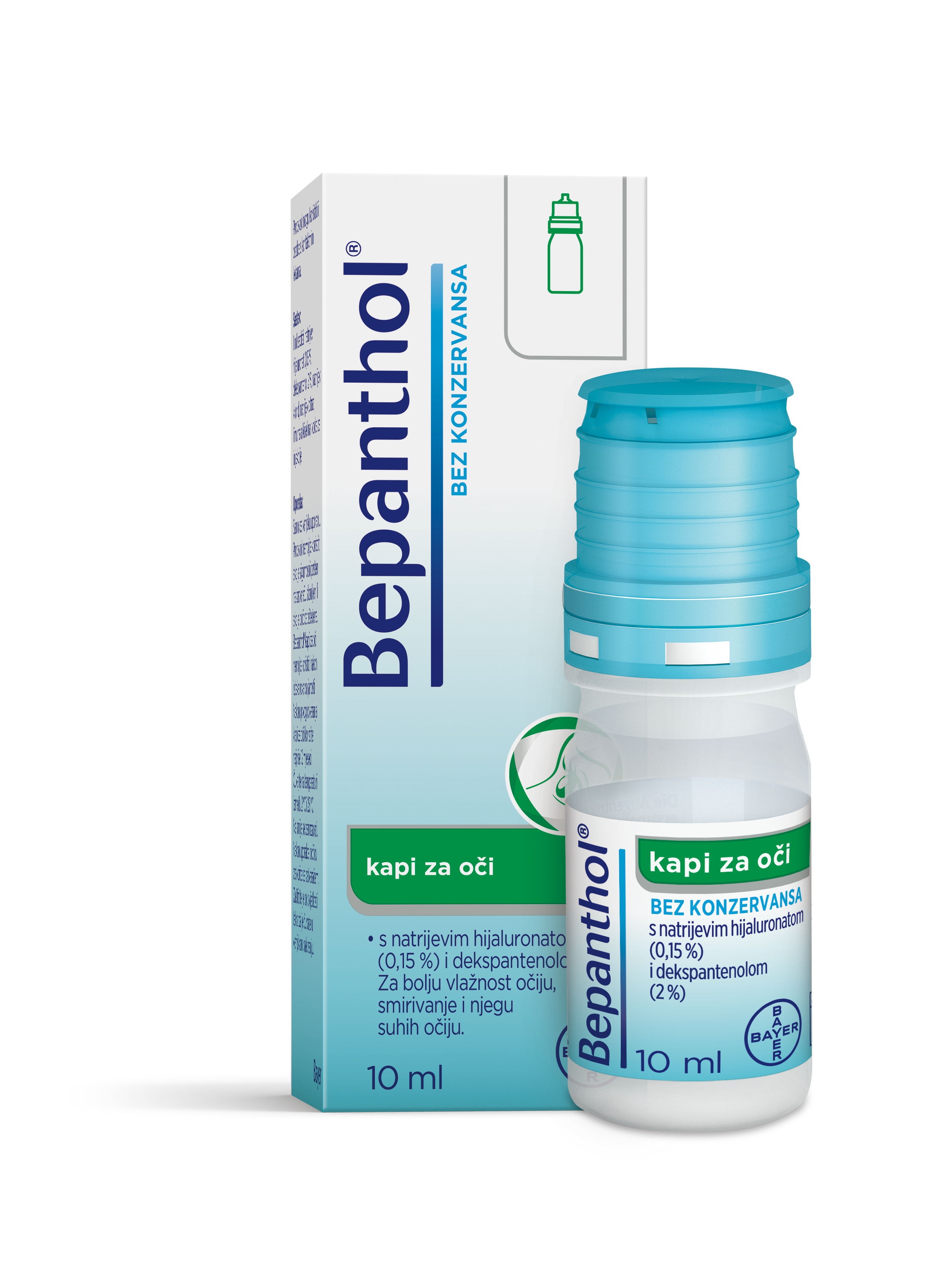 Bepanthol kapi za oči sadrže, hijaluronsku kiselinu i dekspantenol, koji nadraženom oku pružaju trenutno olakšanje. Bepanthol kapi za oči ne sadrže konzervanse, zato ih korisnici dobro podnose čak i nakon dugotrajne upotrebe.